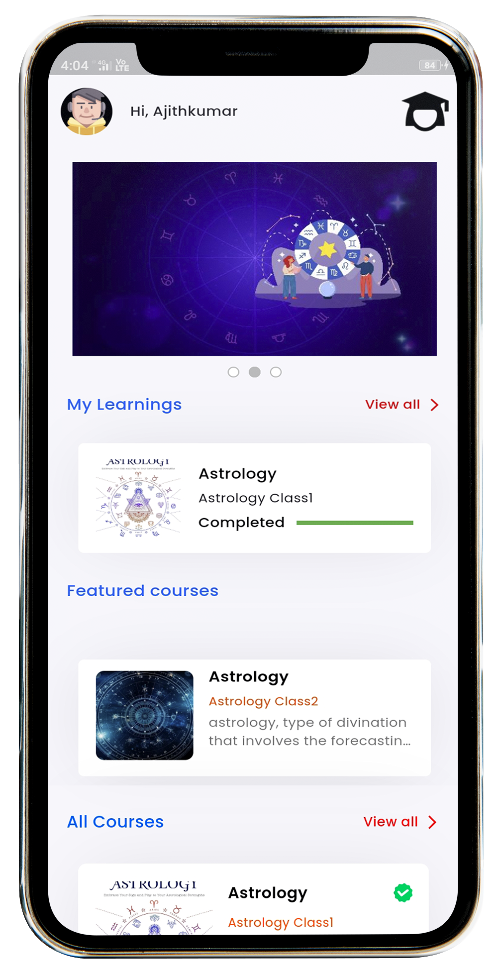 Effortlessly explore astrology, access comprehensive courses, and watch insightful videos with our intuitive platform. Track your learning progress and streamline your astrological education from one convenient app.